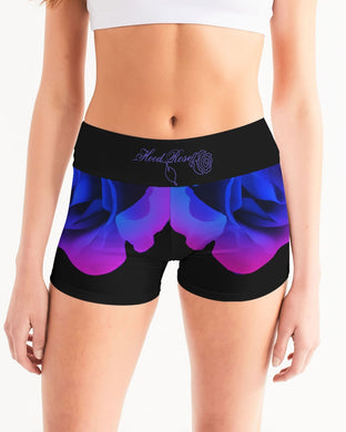 • Blue&Purple Rose Women's Mid-Rise Yoga Shorts