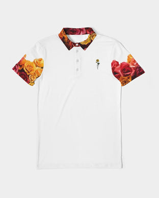 • Fall Roses White Men's Slim Fit Short Sleeve Polo