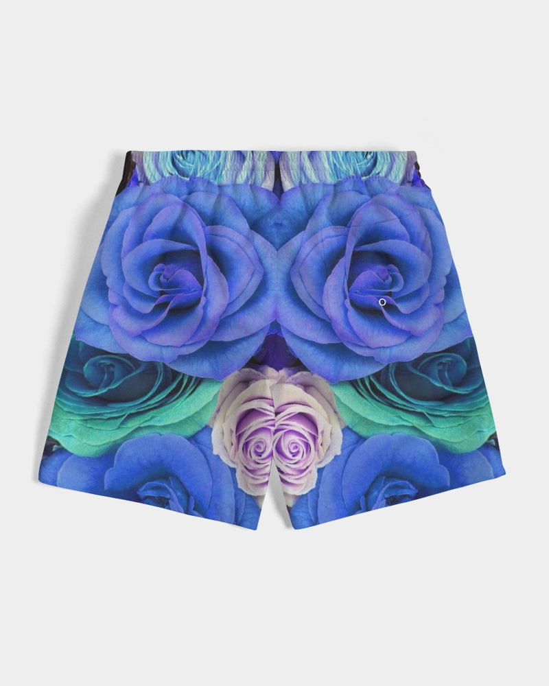About The ArtBlooming in Blue Kick the blues and Bloom Baby! Product DetailsHead to the beach in our classic fit Men's Swim Trunks made with comfort in mind. With an adjustable drawstring waistband, its smooth and durable materials made with UPF 50+ gives you premium UV protection.