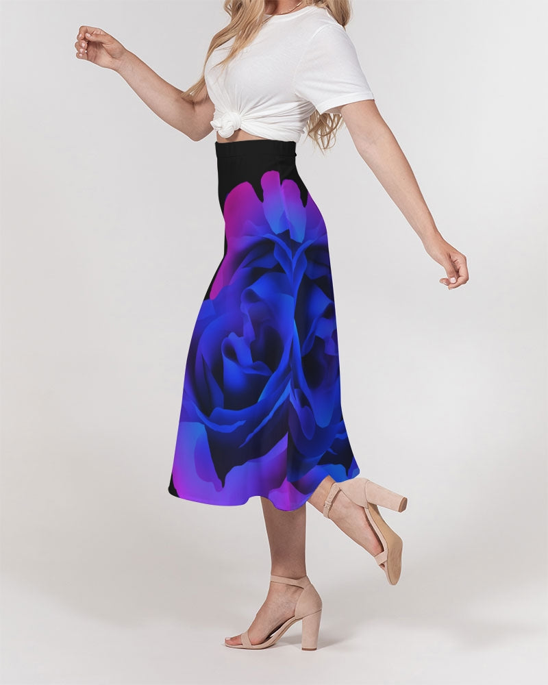 About The ArtBlue&Purple Rose This rose was so enticing with its colors almost looks like it glows Product DetailsTimeless and chic, our Women's A-line Midi Skirt is made from a beautifully draped smooth chiffon. Polished with a thick waistband and side zipper, it's fitted at your waist and has a flowy bottom.