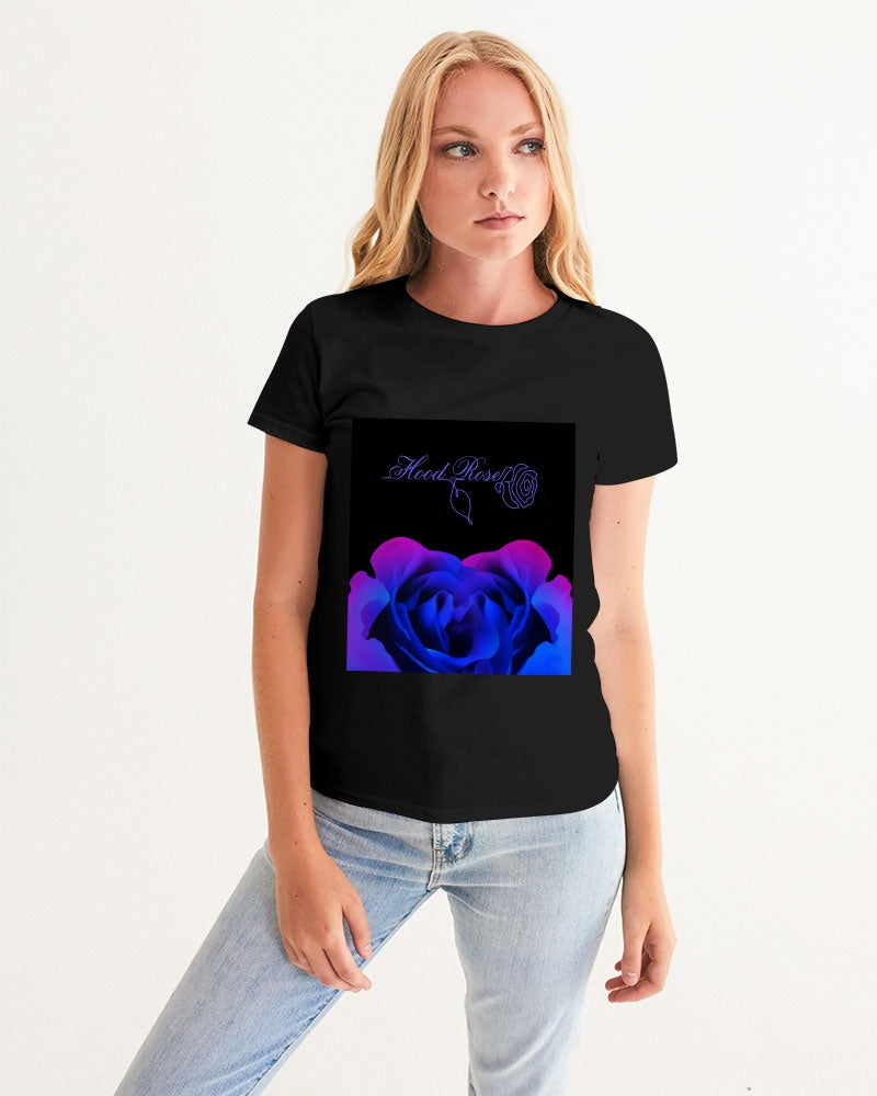 About The ArtBlue&Purple Rose This rose was so enticing with its colors almost looks like it glows Product DetailsMade to chill and designed for you, our premium jersey cotton Women's Graphic Tee is supreme softness. Crafted with comfortable, wear-resistant cotton, it fits your frame flawlessly.