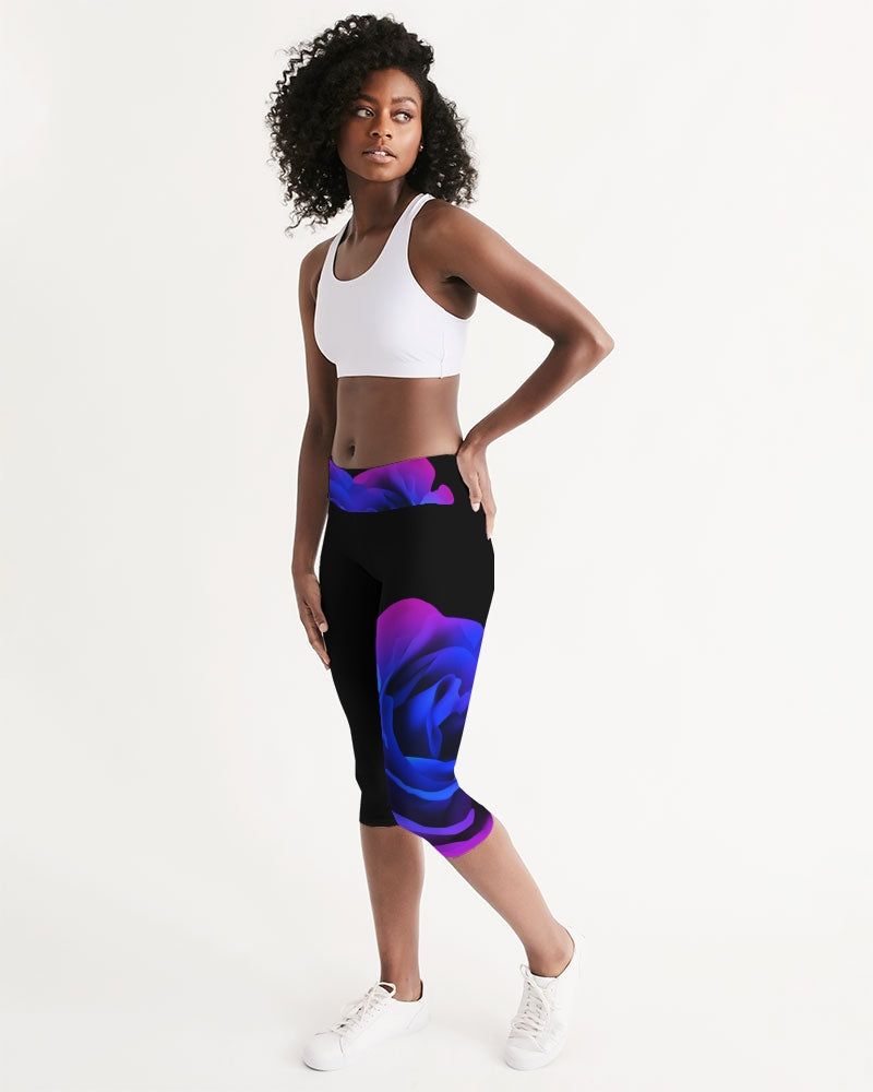About The ArtBlue&Purple Rose This rose was so enticing with its colors almost looks like it glows Product DetailsHigh-tech, breathable fabric makes our Women's Mid-Rise Capri great for workouts or for comfy lounging. Handmade with exquisite stitching for optimal range of movement to perfectly flatter your figure.