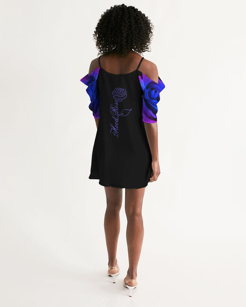 About The ArtBlue&Purple Rose This rose was so enticing with its colors almost looks like it glows Product DetailsFlirty and fun, our Women's Open Shoulder Dress with a mini cut compliments every figure. Short, draped sleeves flow from the open shoulder neckline for an extra flirty flare.