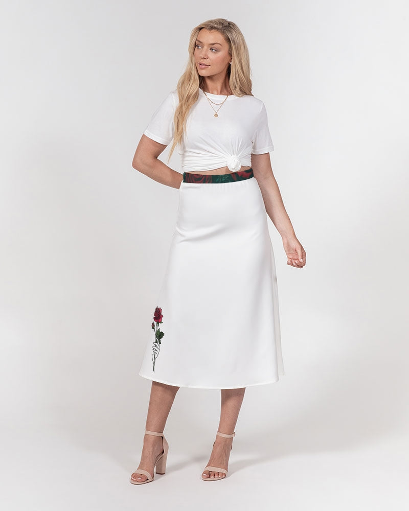 About The ArtLa Colora A Rose speaks of love in a silent language, known only to the heart❤️ Product DetailsTimeless and chic, our Women's A-line Midi Skirt is made from a beautifully draped smooth chiffon. Polished with a thick waistband and side zipper, it's fitted at your waist and has a flowy bottom.