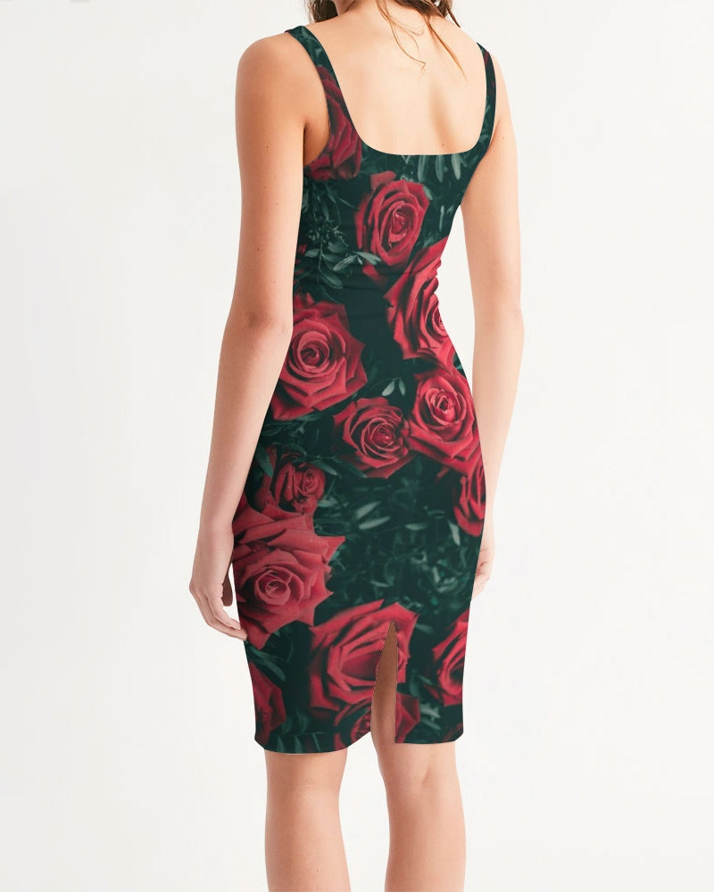 About The ArtLa Colora A Rose speaks of love in a silent language, known only to the heart❤️ Product DetailsThis effortless Women's Midi Bodycon Dress, cut to a figure flaunting silhouette, is perfect plain or dressed up. With a back-slit hem and soft material, this custom made dress hugs your figure in all the right places.