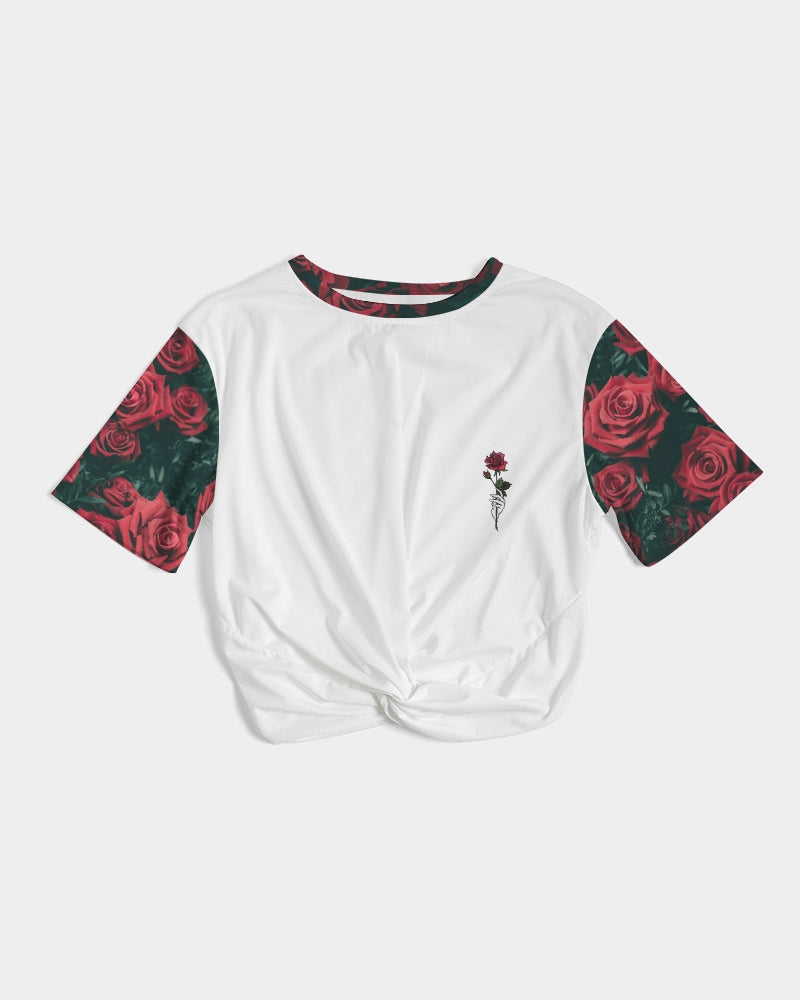 About The ArtLa Colora A Rose speaks of love in a silent language, known only to the heart❤️ Product DetailsA tee with a twist will be your next new face for yoga or casual wear. Our Women's Twist-Front Cropped Tee is crafted from soft, breathable polyblend material to give you style but with an upgrade.