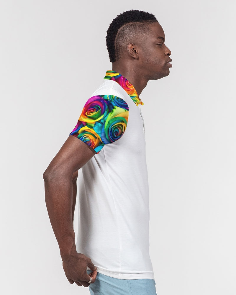 About The ArtSpecial Edition* Tie Dye Pride 2021 Celebrate Pride 2021 with Hood Rose's Special Edition Tie Dye Rainbow Roses Product DetailsLook sharp in this versatile polo, perfect for business casual or a polished weekender outfit. Our Men's Slim Fit Short Sleeve Polo features soft, breathable fabric with a close cut torso, tailored to show your natural physique.
