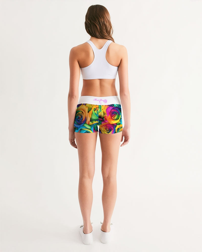 About The ArtSpecial Edition* Tie Dye Pride 2021 Celebrate Pride 2021 with Hood Rose's Special Edition Tie Dye Rainbow Roses Product DetailsMade with stretch high-tech fabric, our sleek and fitting Women's Mid-Rise Yoga Shorts comfortably move with you. Handmade with exquisite stitching provides you a great fit from workouts to lounging around.