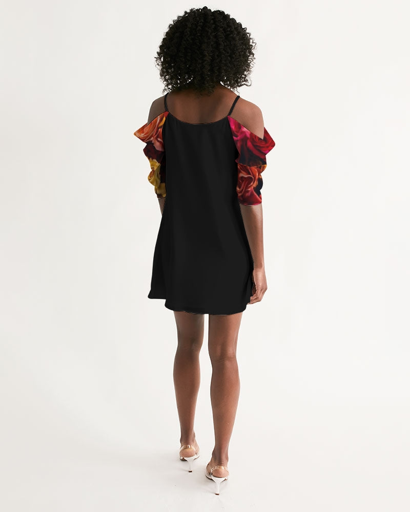 About The ArtSpring Roses-Black These lovely bunches say Spring has Sprung! With beautiful shades or pink, peach and yellow showing of the soft roses glow to spring. Product DetailsFlirty and fun, our Women's Open Shoulder Dress with a mini cut compliments every figure. Short, draped sleeves flow from the open shoulder neckline for an extra flirty flare.