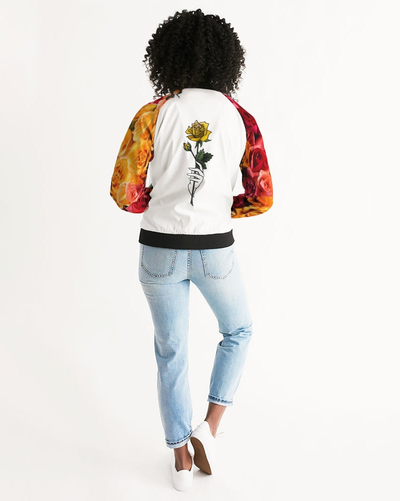 About The ArtWhite Colored Roses With these colors spring has sprung!!! Product DetailsHand-cut and crafted with care, your custom designed Women's Bomber Jacket will set off any look! Its lightweight, airy fabric is lined with the perfect amount of insulation for the chillier months making this a great year round go-to.