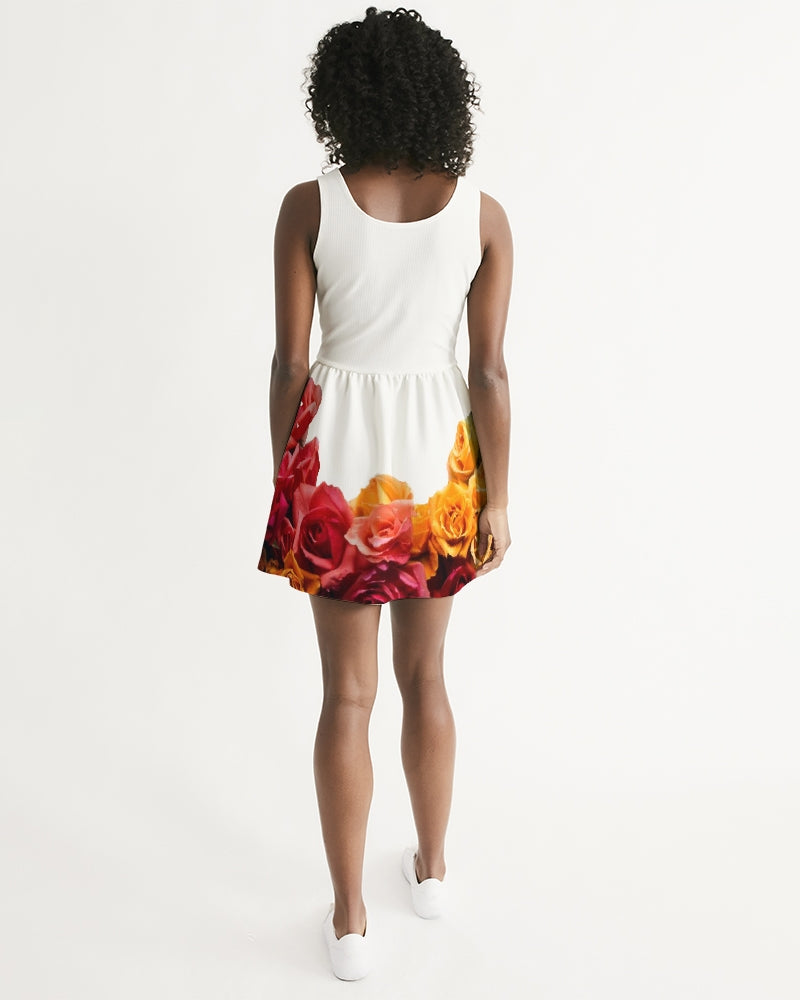 About The ArtWhite Colored Roses With these colors spring has sprung!!! Product DetailsAdd a personal touch to your day in this cute Women's Scoop Neck Skater Dress, tailor-made for a comfy fit. Its soft textured material and scoop back details offers a casual yet one of a kind custom made feel.